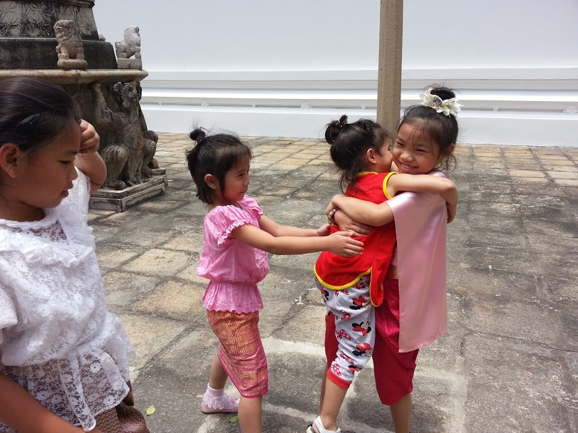 Kalani had a nice day that un-ordination ceremony day. She has good patience for the waiting around parts, and played with Keo's best friend's younger sister and two other girls a lot of the time.