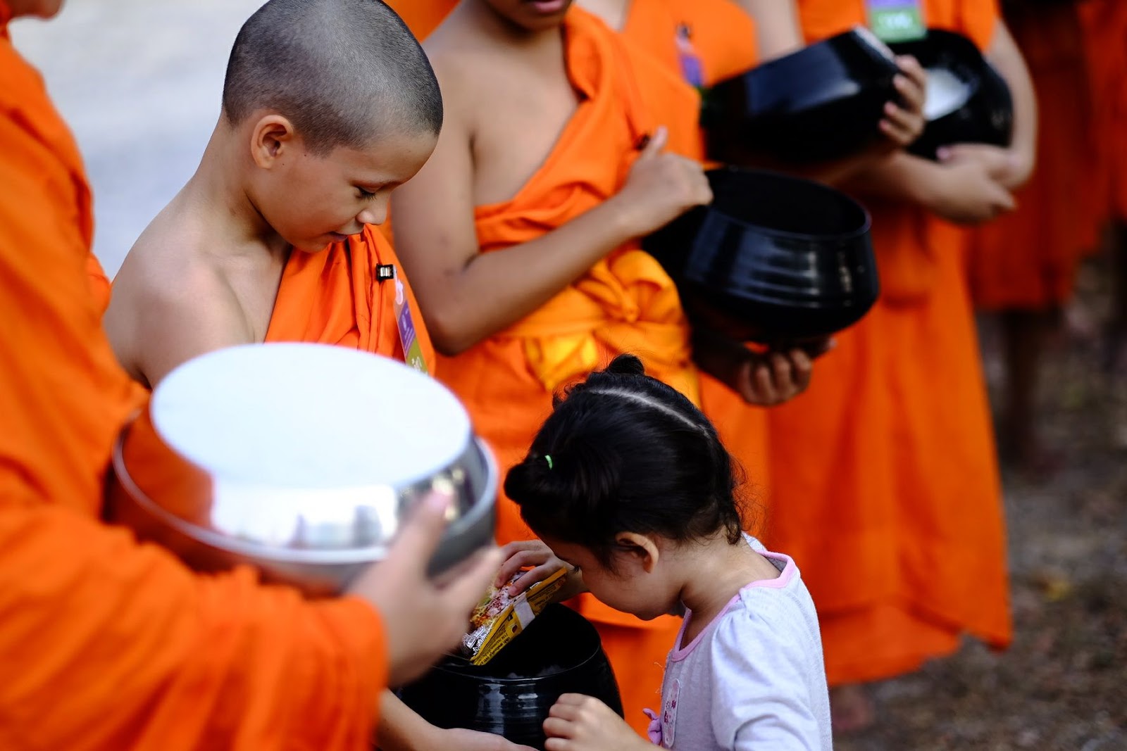 offering alms to Nane Keoni in Cha-am |