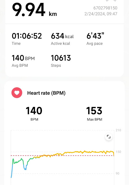 It's nice being able to see that on a heart rate graph now. I don't need to, I can feel it internally, but there it is in stats, that I was running a slow pace (6:30 km or so) at 160 bpm heart rate, for the last 6 km. The actual experience had more immediacy and depth than the stats; I felt a lot like walking instead. But I didn't; I kept running "slow," and toughed it out.